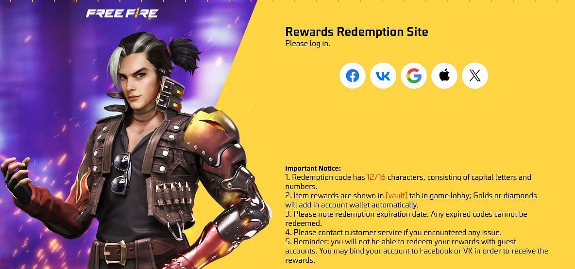 स्टेप 2: फेसबुक, गूगल, X, VK और एप्पल जैसे विकल्पों से इस वेबसाइट पर लॉगिन करें। आपको उसी अकाउंट से इसमें कदम रखना होगा, जो आपकी गेमिंग ID से लिंक हो।