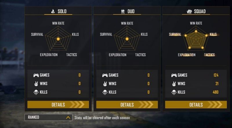 इस खिलाड़ी ने Free Fire रैंक मोड में 124 स्क्वाड मैच खेलकर 21 में जीत हासिल की है। उन्होंने 480 किल्स किये हैं और उनका K/D रेश्यो 4.66 का है। GT King के डुओ और सोलो स्टैट्स शून्य है।
