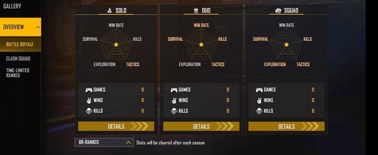 Gyan Gaming ने फ्री फायर मैक्स के अंदर क्लैश स्क्वाड रैंक मोड में स्क्वाड स्टैट्स शून्य है। इसके आलावा डुओ और सोलो स्टैट्स भी शून्य है।