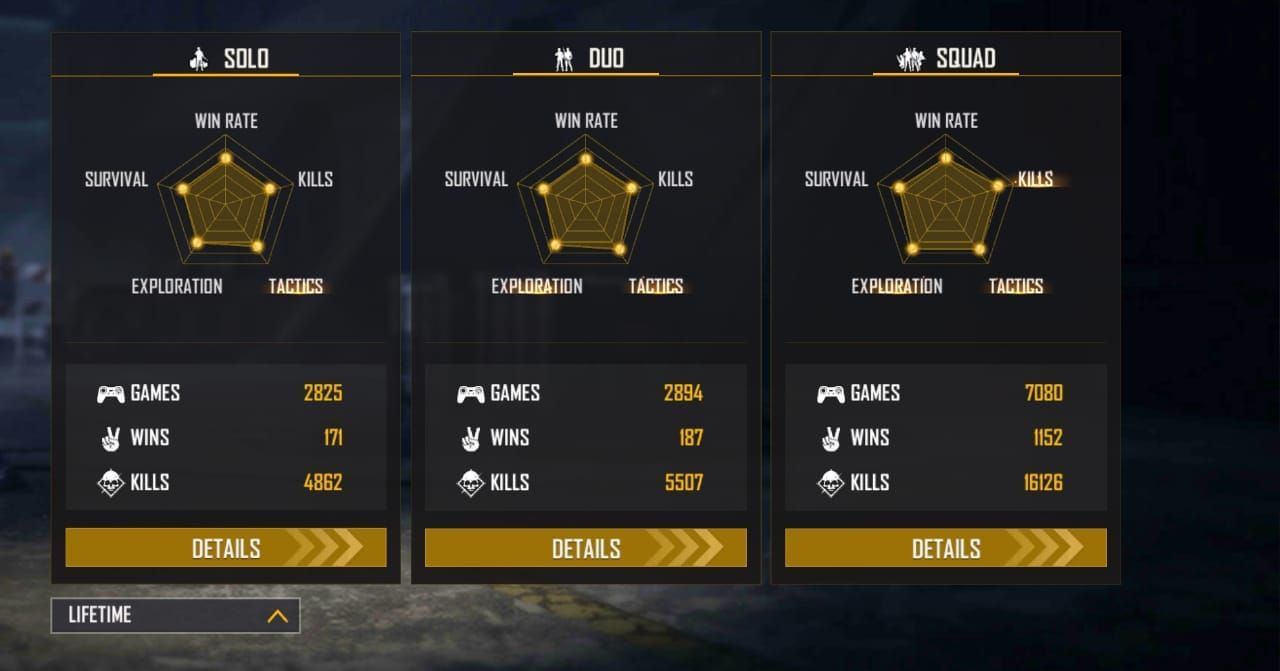 Helping Gamer ने Free Fire में 7080 स्क्वाड मैच खेलकर 1152 में जीत हासिल की है। उन्होंने 16126 किल्स किये हैं और उनका K/D रेश्यो 2.72 का है। इस प्लेयर ने डुओ मोड में 2894 मैच खेले हैं इस दौरान उन्होंने 187 में जीत हासिल की है। उन्होंने 5507 किल्स किये हैं और उनका K/D रेश्यो 2.03 का है। इस प्रसिद्व यूट्यूबर ने Free Fire सोलो मोड में 2825 मैच खेलकर 171 में जीत हासिल की है। उन्होंने 4862 किल्स किये हैं और उनका K/D रेश्यो 1.83 का है।