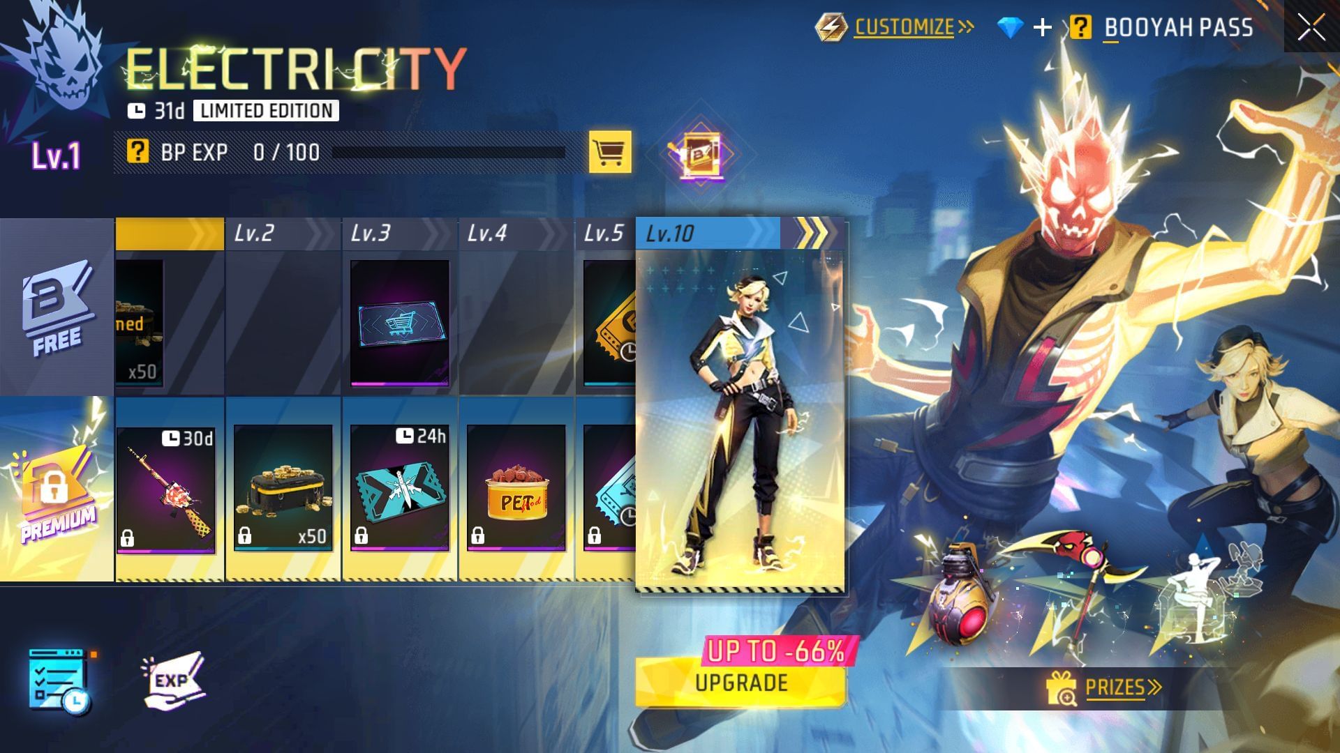 - स्टेप 3: आपके सामने सीजन 13 का Booyah Pass नज़र आएगा और “Upgrade” के बटन पर क्लिक करें।