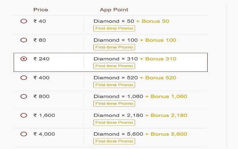 सबसे पहली बार खरीदी करने पर डायमंड्स के टॉप-अप की कीमत: