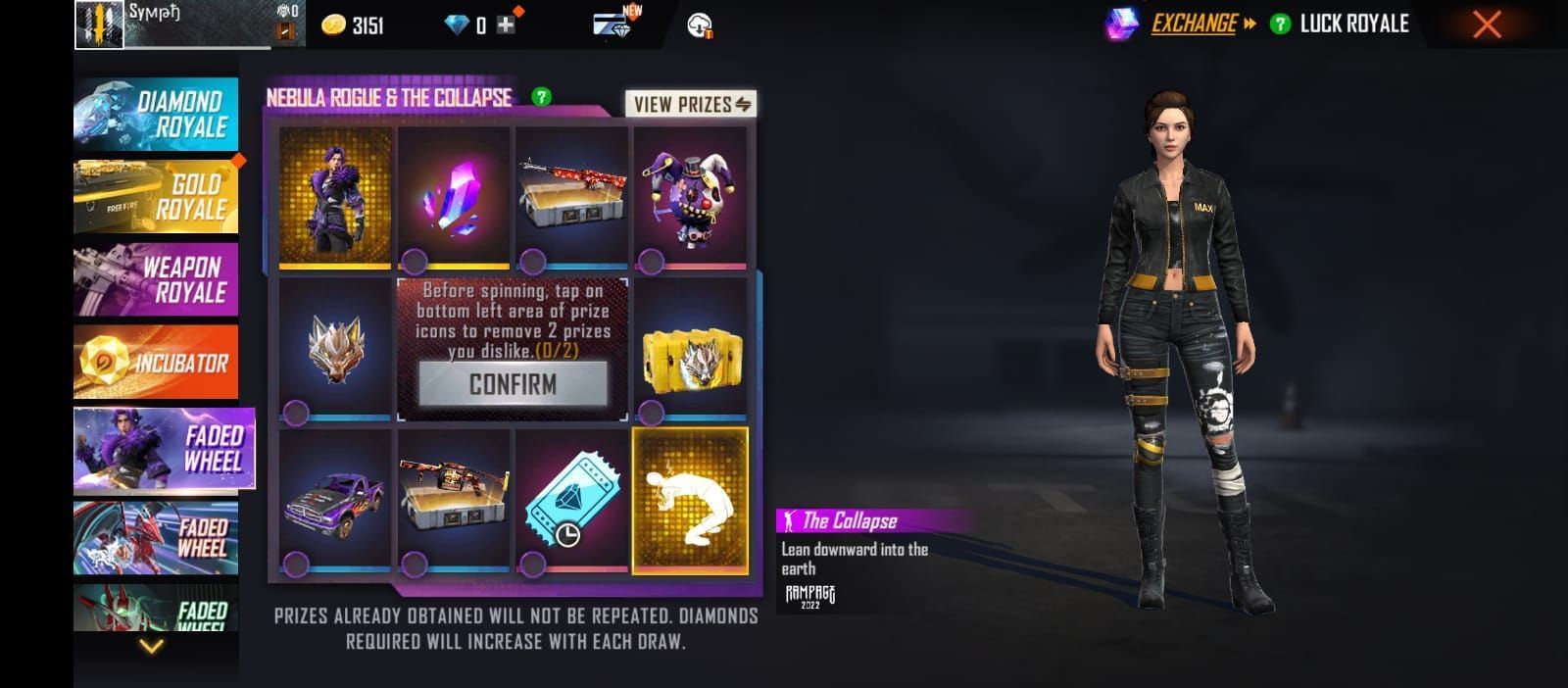 Faded Wheel इवेंट आया है और इसमें 10 इनाम है। आप दी इनाम हटाकर 8 इनामों को डायमंड्स खर्च करके हासिल कर सकते हैं। आपको हर स्पिन पर इतने डायमंड्स लगेंगे: