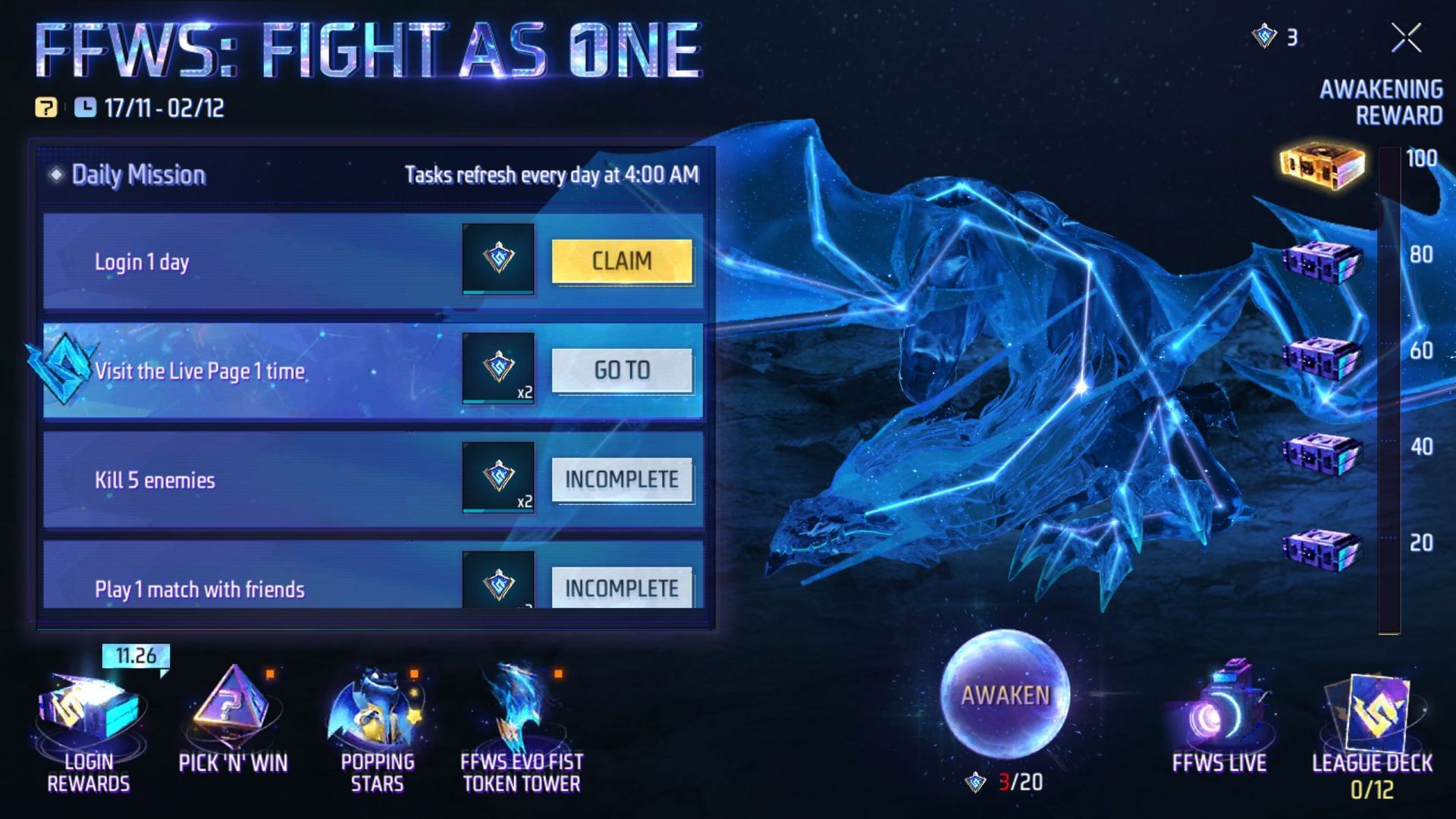स्टेप 1: Free Fire MAX को खोलें और फिर FFWS 2022 इवेंट के इंटरफेस पर जाएं।