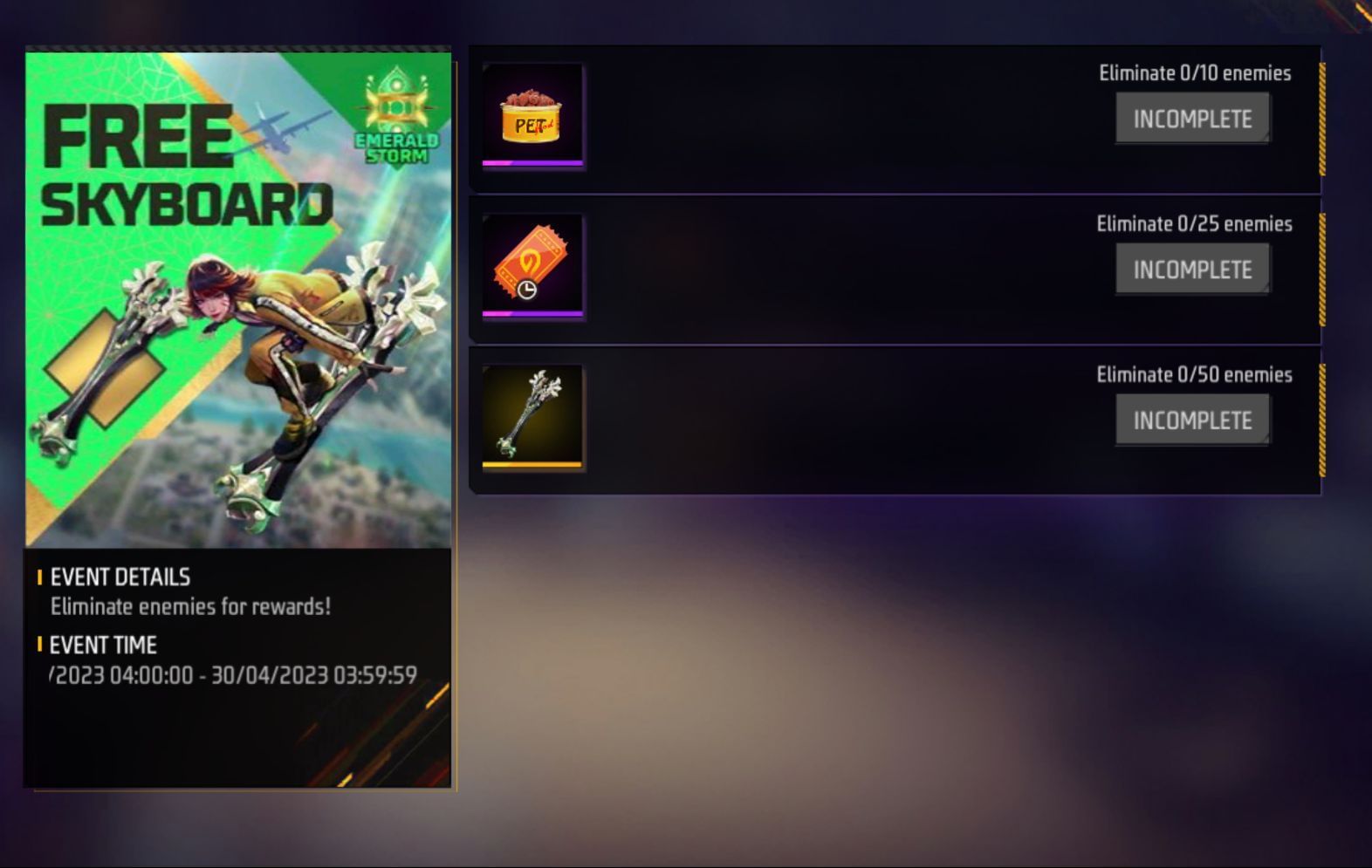सारे टास्क करने के बाद आपको Free Fire MAX में Elimination Challenge द्वारा Sky Claw Skyboard मुफ्त में हासिल करने के लिए इन स्टेप्स का पालन करना है: