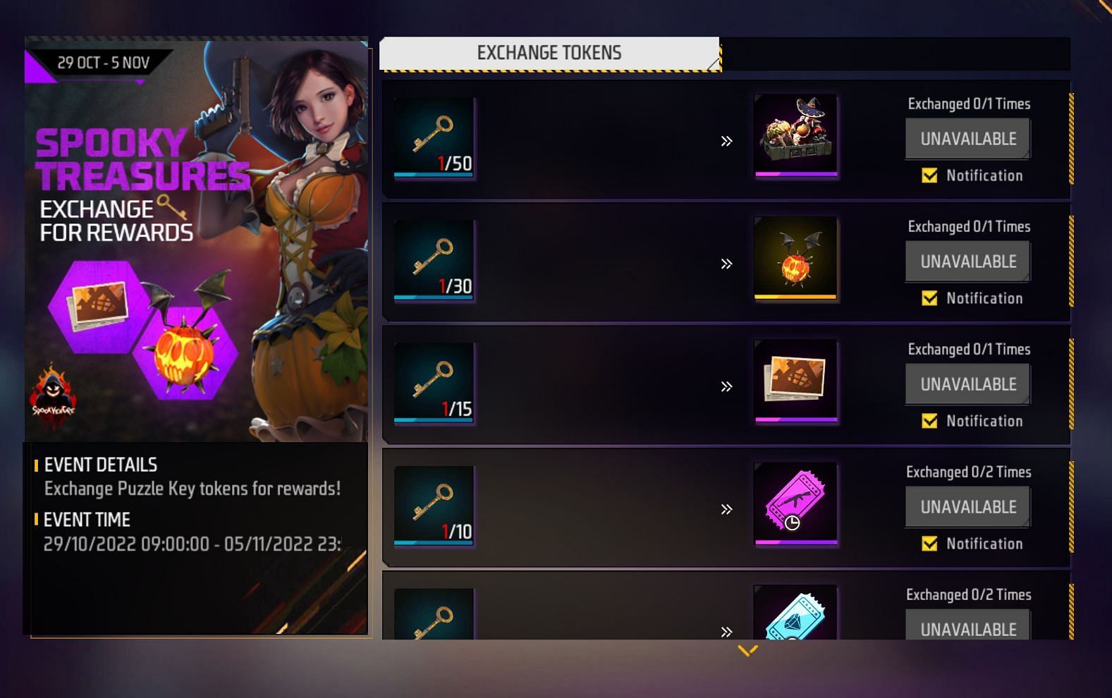 - 1x डायमंड रॉयल वाउचर (समाप्त होने की तारीख – नवंबर 30, 2022) – 10x Puzzle Keys (दो बार एक्सचेंज कर सकते हैं)
