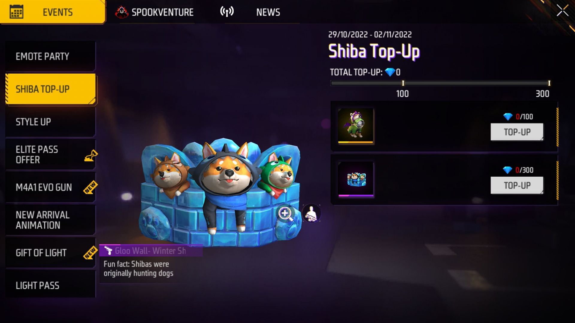 स्टेप 3: डायमंड्स खिलाड़ी के अकाउंट में जुड़ जाते हैं। उसके बाद में गेमर्स को Shiba टॉप-अप इवेंट में जाना होगा।