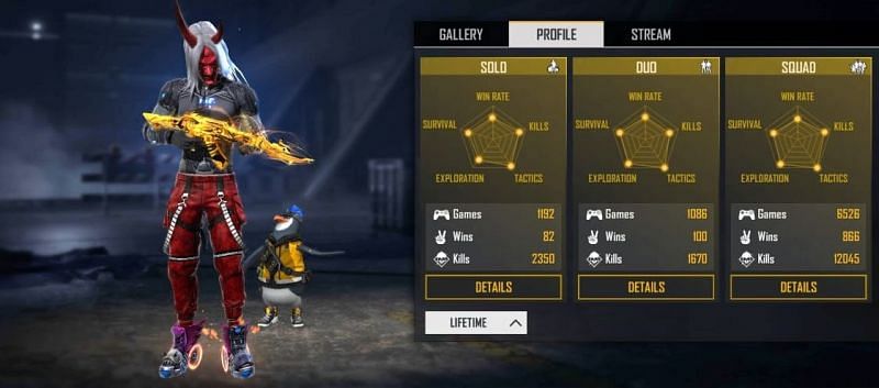 उन्होंने 346 स्क्वाड मैच खेले हैं और उन्हें 32 मैचों में जीत मिली है। 580 किल्स के साथ उनका K/D रेश्यो 1.85 का है। इसके अलावा उन्होंने डुओ में काफी कम मैच खेले हैं