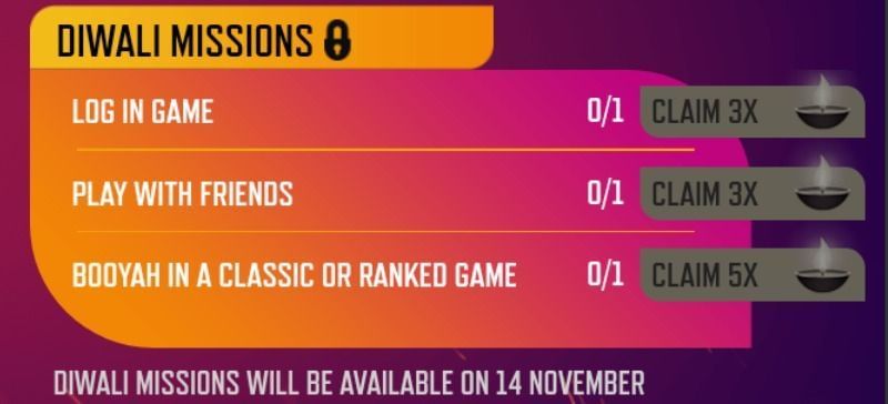 दिवाली मिशन्स सिर्फ 14 नवंबर को मौजूद होंगे और यहां से खिलाडियों को ज्यादा दिया टोकन्स मिल सकते हैं। ये रहे इनामों की जानकारी: