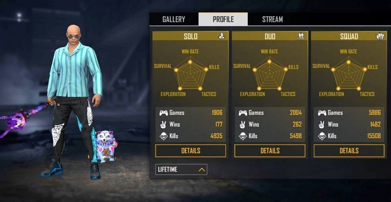 LOUD ने Free Fire में 5,986 स्क्वाड मैच खेलकर 1,482 में जीत दर्ज करी है। साथ उन्होंने 1,508 किल्स कर चुके हैं, और उनका K/D रेश्यो 3.44 का है। उन्होंने डुओ मोड में 2,004 मैच खेलकर 262 में जीत दर्ज करी है। साथ उन्होंने 5,498 किल्स कर चुके हैं, और उनका K/D रेश्यो 3.16 का है। इन यूटयूबर ने सोलो में 1,906 मैच खेलकर 177 में जीत दर्ज करी है। साथ उन्होंने 4,935 किल्स कर चुके है, और उनका K/D रेश्यो 2.85 का है।