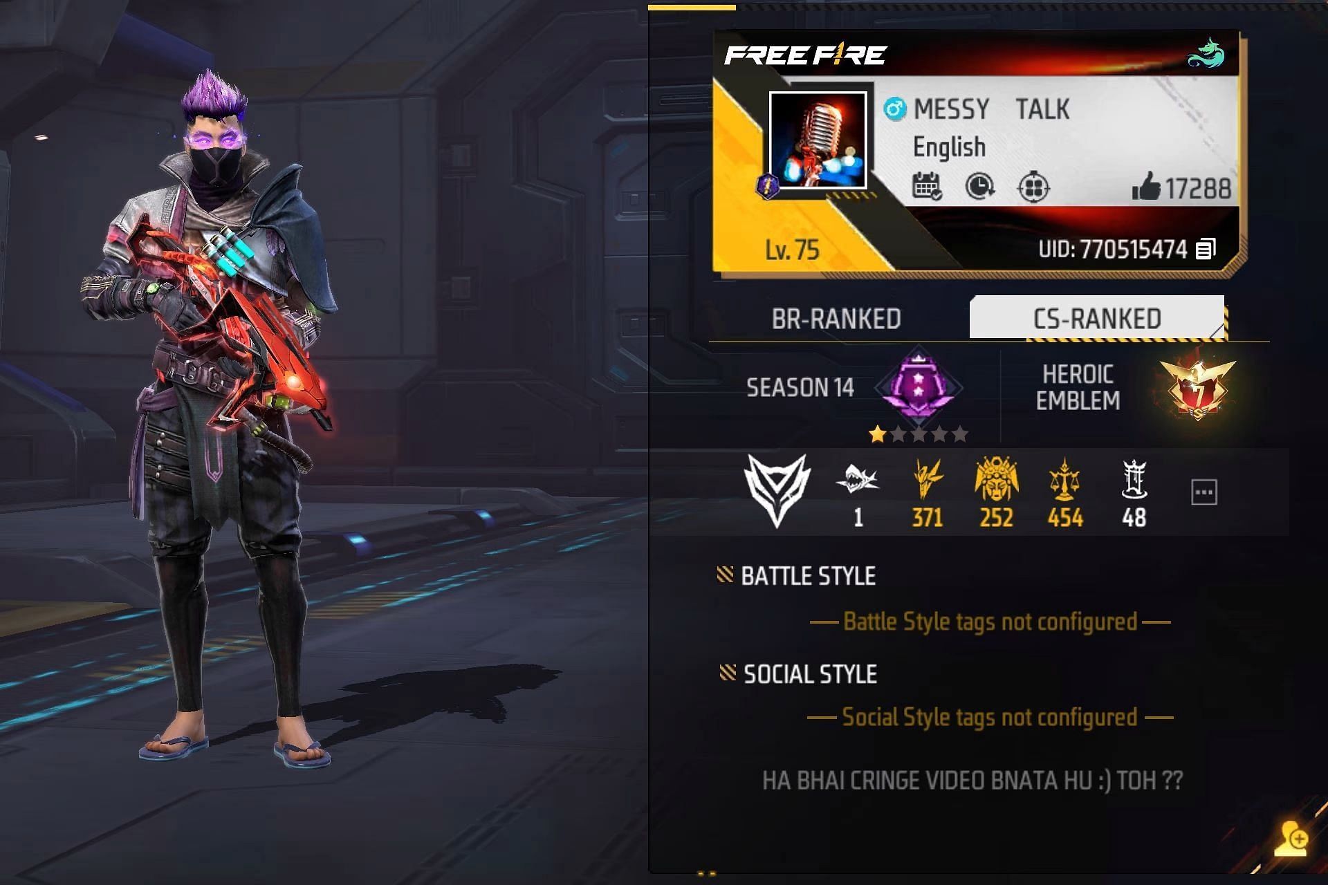 Messy Talk की Free Fire Max ID और स्टैट्स