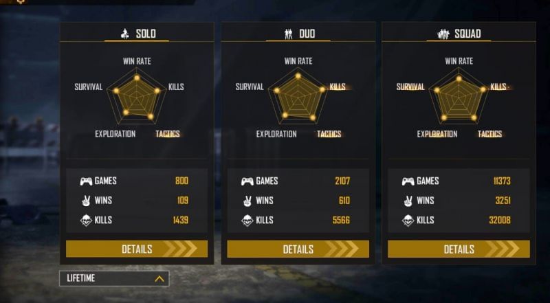 NayanAsin ने Free Fire में 11373 स्क्वाड मैच खेलकर 3251 में जीत हासिल की है। उन्होंने 32008 किल्स किये हैं और उनका K/D रेश्यो 3.94 का है। इस खिलाड़ी ने डुओ मोड में 2107 मैच खेले हैं इस दौरान उन्होंने 610 में जीत हासिल की है। उन्होंने 5566 किल्स किये हैं और उनका K/D रेश्यो 3.72 का है। इस फेमस Free Fire यूट्यूबर ने सोलो मोड में 800 मैच खेलकर 109 में जीत हासिल की है। उन्होंने 1439 किल्स किये हैं और उनका K/D रेश्यो 2.08 का है।