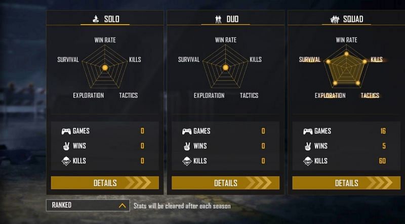 NayanAsin ने Free Fire रैंक मोड में 16 स्क्वाड मैच खेलकर 5 में जीत हासिल की है। उन्होंने 60 किल्स किये हैं और उनका K/D रेश्यो 5.45 का है। इस प्लेयर के डुओ और सोलो स्टैट्स शून्य है।
