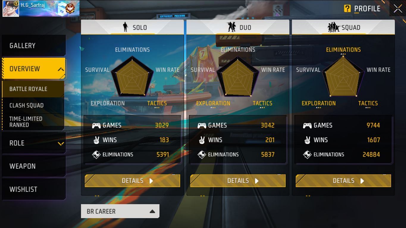 Helping Gamer में स्क्वाड मोड में 9744 मैच खेले हैं और इसमें से उन्हें 1607 में जीत मिली है। वो 24884 एलिमिनेशन कर चुके हैं और उनका K/D रेश्यो 3.06 का है। डुओ मोड में उन्होंने 3042 मैच खेलते हुए 201 में जीत दर्ज की है। वो 5837 किल कर चुके हैं और इसमें उनका K/D रेश्यो 2.05 का है। Helping Gamer ने 3029 सोलो मैचों में हिस्सा लेते हुए 183 जीत दर्ज की हुई है। वो 5391 किल कर चुके हैं और उनका K/D रेश्यो 1.89 का रहा है।