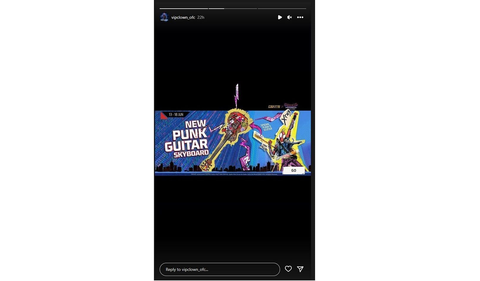 हाल ही में @vipclown_ofc ने आने वाले न्यू Punk Guitar स्काईबोर्ड इवेंट का पोस्टर इंस्टाग्राम स्टोरी के अनुसार लीक किया है। ये इन-गेम 13 जून 2023 को भारतीय सर्वर पर प्रस्तुत होने वाला है। ये इवेंट खिलाड़ियों को ग्रैंड प्राइज में Spider-Punk's Guitar स्काईबोर्ड और अन्य इनाम ऑफर कर रहा है। ये इवेंट 18 जून 2023 तक रनिंग पर रहने वाला है।