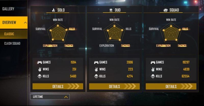 Pahadi Gaming ने 19297 स्क्वाड मैच खेले हैं और उन्हें 4839 में जीत दर्ज की हुई है। वो 62554 किल्स कर चुके हैं और उनका K/D रेश्यो 4.33 का है। डुओ मोड में उन्होंने 2006 मैचों में से 223 किल्स कर चुके हैं। उनका K/D रेश्यो 2.40 का है और वो 4274 किल्स कर चुके हैं। वो 1594 सोलो मैचों में से 251 में जीत दर्ज कर चुके हैं। वो 5460 किल्स कर चुके हैं और उनका K/D रेश्यो 4.07 का है।