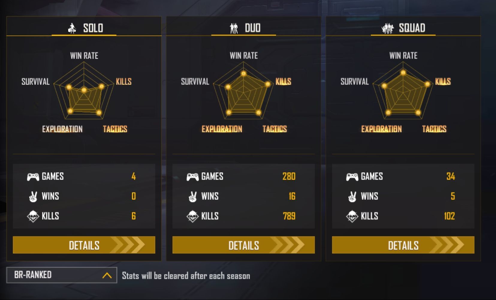 Parwez Ahmed ने गरेना फ्री फायर मैक्स में क्लैश स्क्वाड रैंक मोड में 34 स्क्वाड मैच खेले हैं और उन्हें 5 में जीत मिली हैं। इस दौरान उन्होंने 102 किल्स किये हैं और उनका K/D 1.50 रेश्यो का है। इसके साथ ही उन्होंने डुओ मोड में 280 मैच खेले हैं और उन्हें 16 में जीत मिली हैं। इसके साथ ही 789 किल्स कर चुके हैं और उनका K/D 2.99 का है। उन्होंने सोलो मोड में 4 मैच खेलकर 6 किल्स किये हैं और उनका K/D रेश्यो 3.52 का है।