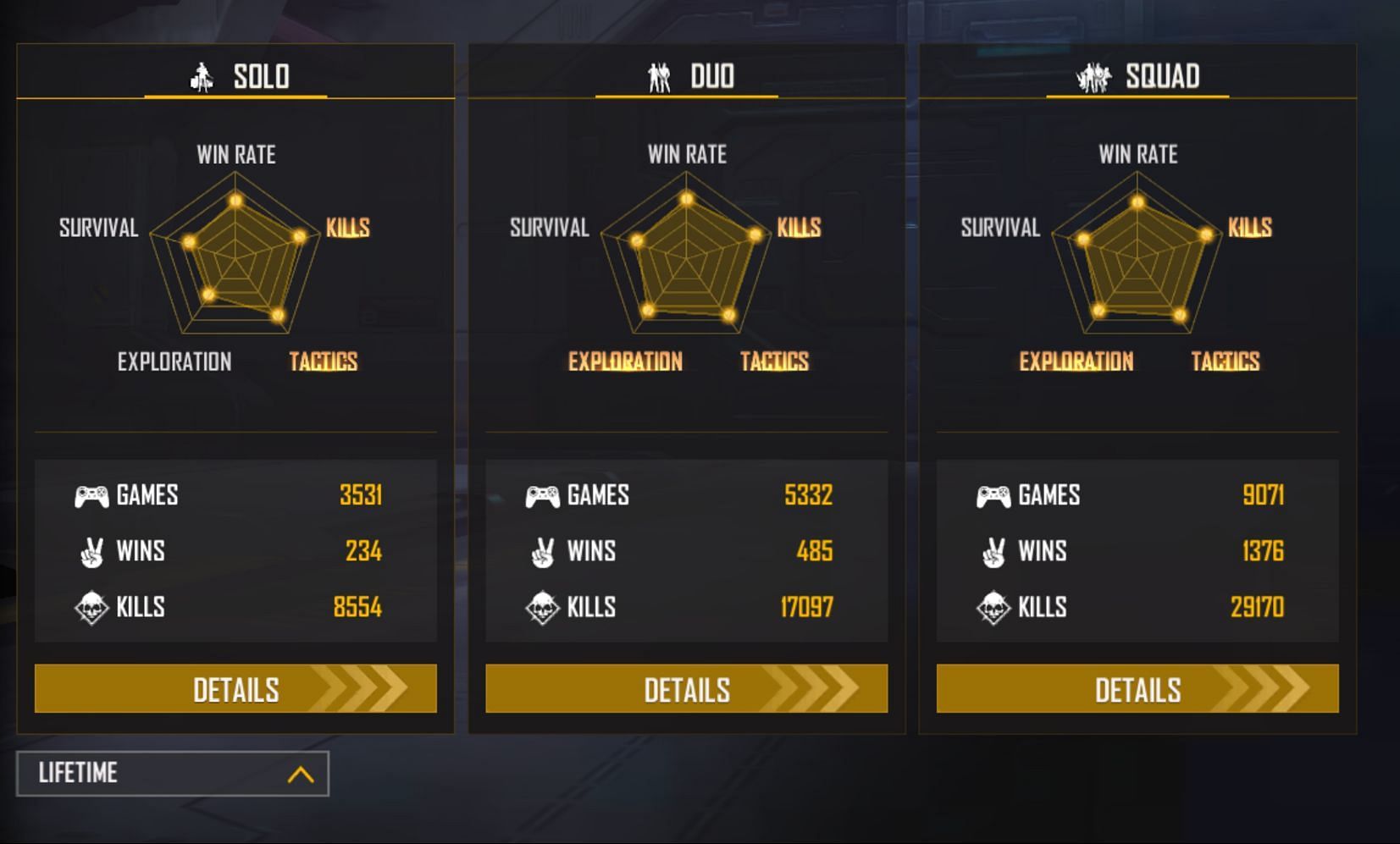 Parwez Ahmed ने गरेना फ्री फायर मैक्स में 9071 स्क्वाड मैच खेले हैं और उन्हें 1376 में जीत मिली हैं। इस दौरान उन्होंने 29170 किल्स किये हैं और उनका K/D 2.59 रेश्यो का है। इसके साथ ही उन्होंने डुओ मोड में 5332 मैच खेले हैं और उन्हें 485 में जीत मिली हैं। इसके साथ ही 17097 किल्स कर चुके हैं और उनका K/D 3.53 का है। उन्होंने सोलो मोड में 3531 मैचों में से 234 जीत दर्ज की हुई है। इसके साथ ही उनका K/D 3.79 रेश्यो का है जबकि वो 8554 किल्स कर चुके हैं।