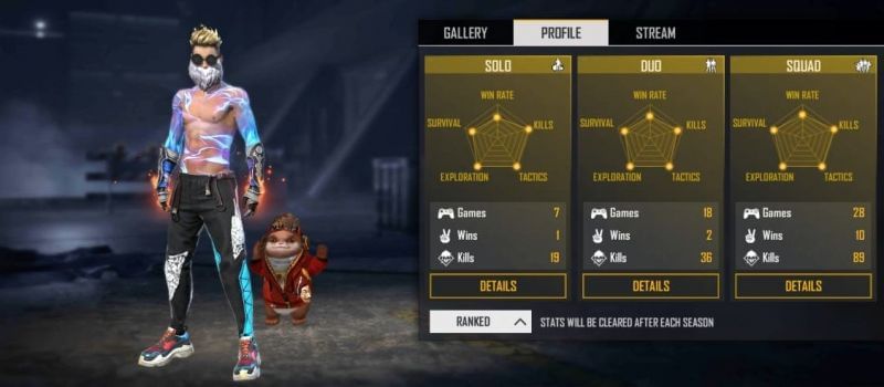 डुओ में इस खिलाडी ने 18 मैच खेले हैं और इसमें से 2 में उन्हें जीत मिली है। यहां उनका K/D रेश्यो 2.25 का है। इस प्रसिद्ध यूट्यूबर ने 7 सोलो गेम्स भी खेले हैं और एक में जीत दर्ज की है।