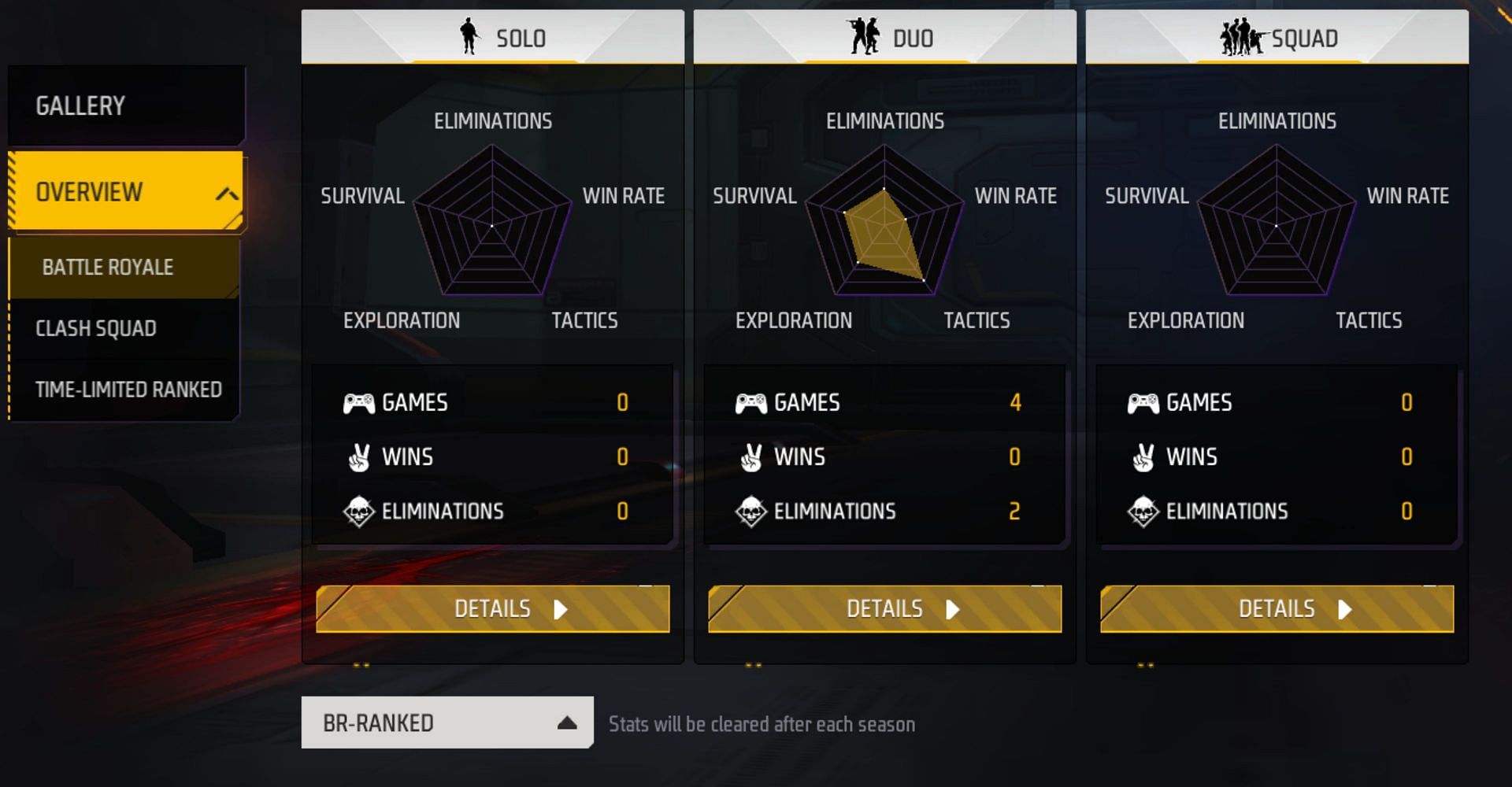 PN Rose ने फ्री फायर मैक्स में बैटल रॉयल रैंक स्टैट्स मोड में स्क्वाड स्टैट्स शून्य है। उन्होंने डुओ मोड में 4 मैच खेलकर 2 किल्स किये हैं। उनके सोलो स्टैट्स शून्य है।