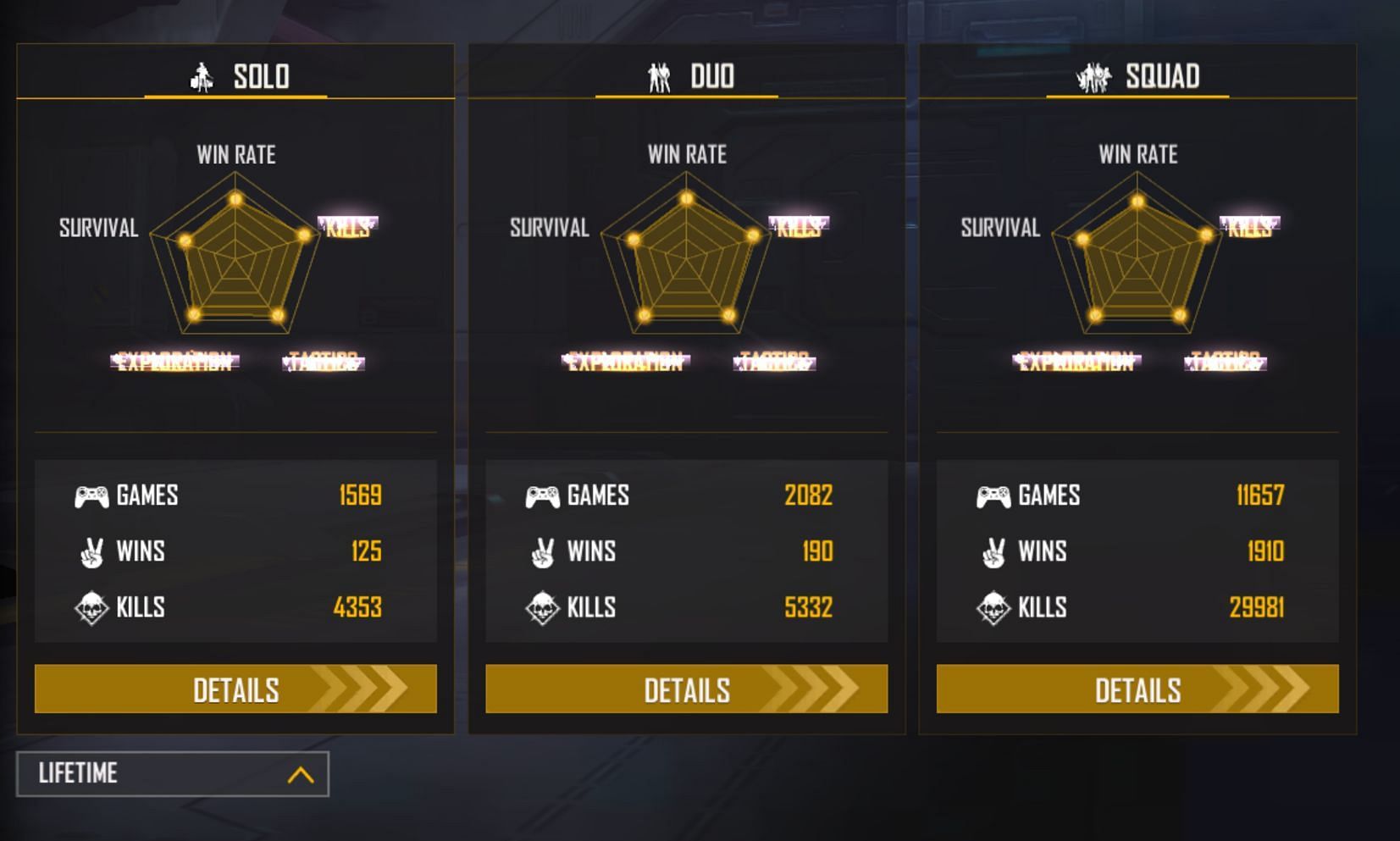 पंकज ने 1569 सोलो मैचों में 125 जीत दर्ज की है। साथ ही वो 4353 किल्स कर चुके हैं और उनका K/D रेश्यो 3.01 का है। Shadow Shooter ने डुओ मोड में 2082 मैच खेले हैं और उन्हें 190 में जीत मिली है। वो 5332 किल्स कर चुके हैं और उनका K/D रेश्यो 2.82 का है। उन्होंने 11657 स्क्वाड मैचों में 1910 जीते हैं। वो अभी तक 29981 किल्स कर चुके हैं और उनका K/D रेश्यो 3.08 का है।