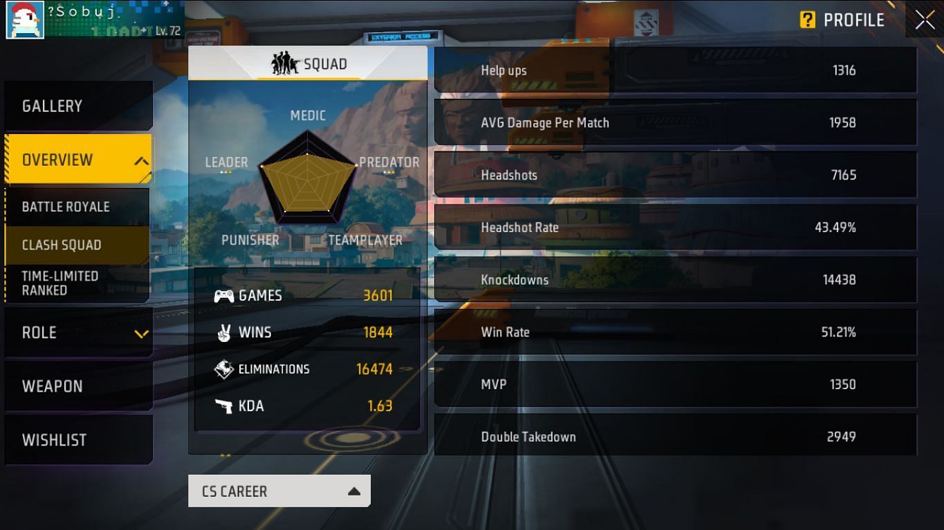 God Danger YT ने क्लैश स्क्वाड मोड में 4611 मैच खेले हैं और उन्हें 3006 में जीत मिली हैं। वो 19734 किल करने में सफल हुए हैं और उनका KDA 1.90 का है। वो 1401 मुकाबलों में MVP रह चुके हैं और उनका जीत प्रतिशत 65.19% है।