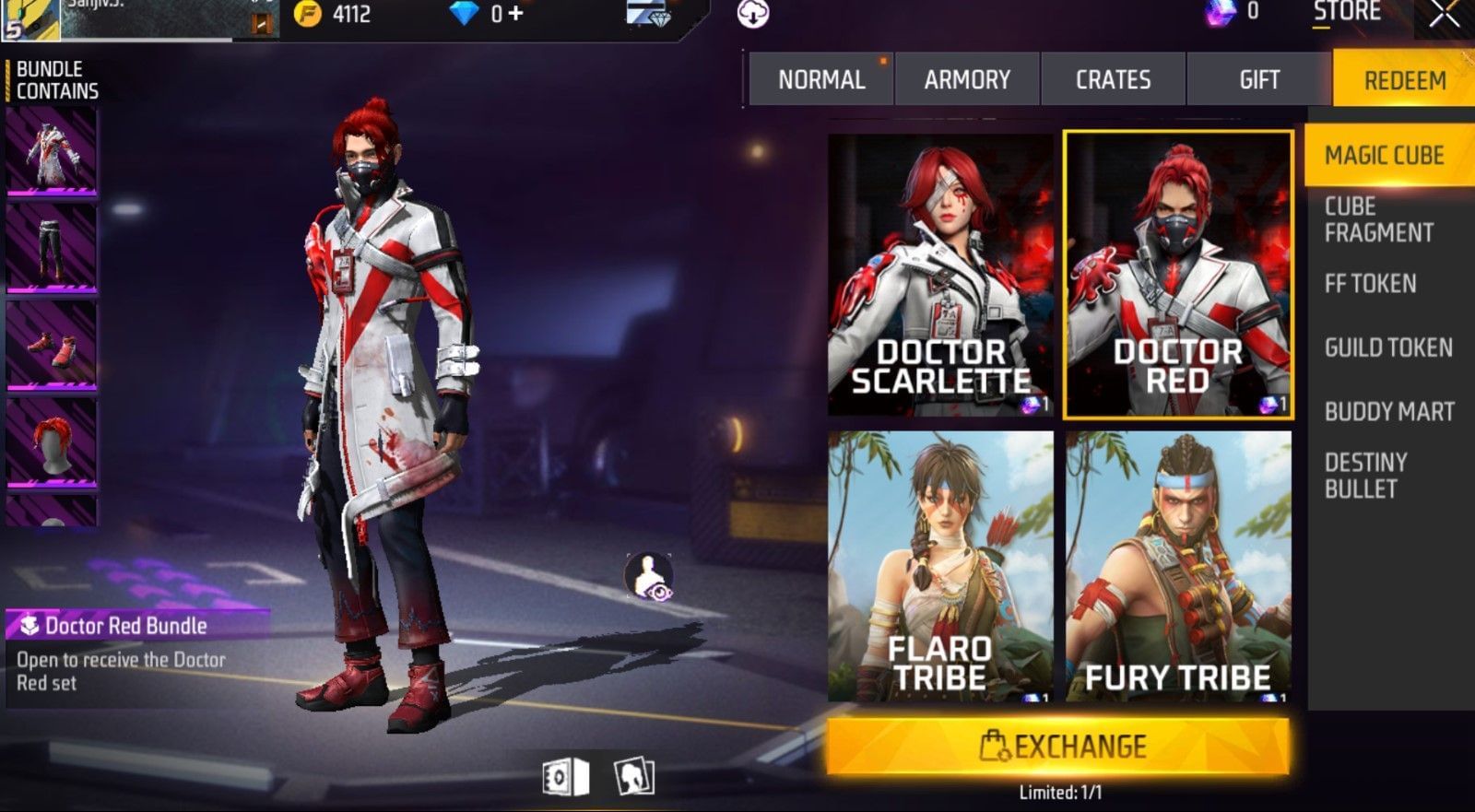 Free Fire Max में गेम के अंदर Doctor Red बंडल सबसे अनोखा ऑउटफिट है। गेमर्स इस बंडल को मैजिक क्यूब से अनलॉक कर सकते हैं। ये आकर्षित कॉम्बिनेशन से बनाया गया बंडल है।