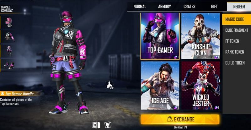 स्टेप 2: खिलाडियों को रिडीम के विकल्प पर क्लिक करना है और टॉप गेमर बंडल पर क्लिक करना है और फिर एक्सचेंज के बटन पर क्लिक करना है।