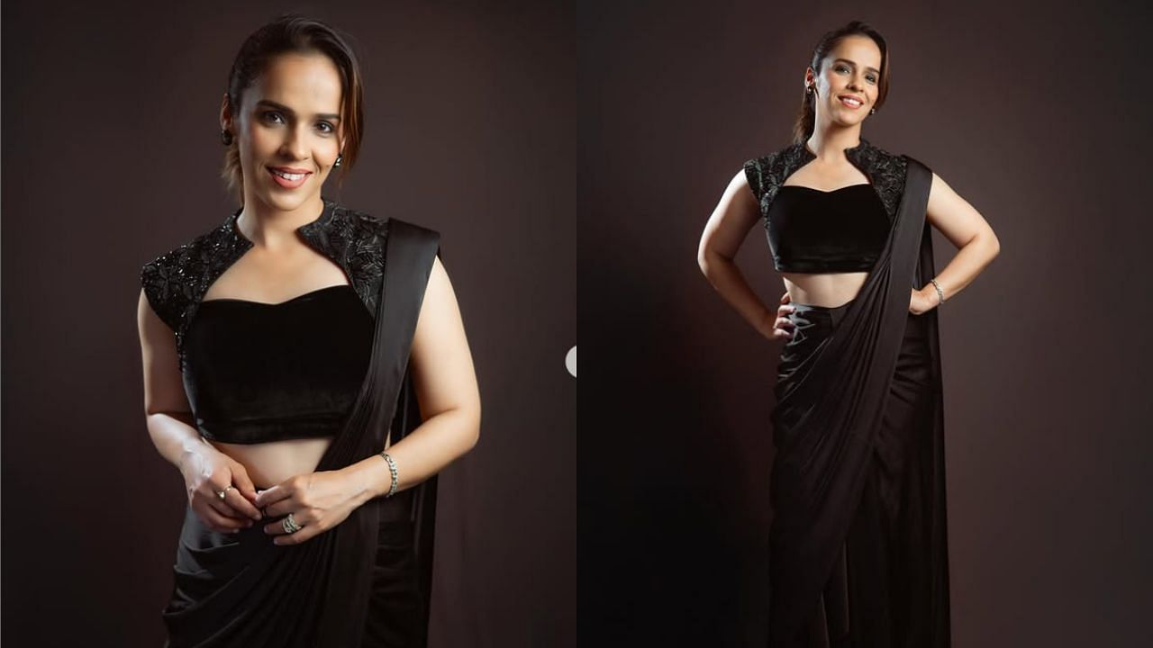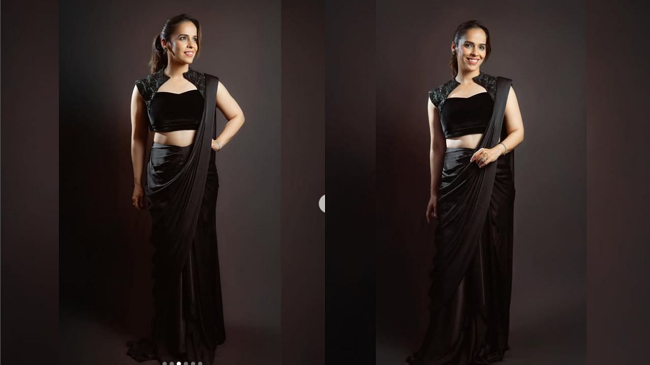 Saina Nehwal Photos in Black Saree : साइना नेहवाल भारत की एक दिग्गज बैडमिंटन खिलाड़ी हैं। साइना नेहवाल ने बैडमिंटन खिलाड़ी बनने के लिए बहुत मेहनत की है। जीवन में कई सारी चीजों का त्याग किया, अपने संघर्ष और लगन से साइना नेहवाल भारत ही नहीं, बल्कि एक अंतरराष्ट्रीय स्तर की खिलाड़ी बनीं। खेल जगत में तो साइना नेहवाल का डंका बजता है, लेकिन उनके स्टाइल, खेलने के तरीके, और खुद को फिट रखने के लिए उनकी मेहनत आदि को भी फैंस नोटिस करते हैं और पसंद करते हैं। साइना नेहवाल की खूबसूरती के बारे में भी सोशल मीडिया पर खूब चर्चा होती है, और फैंस उनकी खूब तारीफ करते हैं। हाल ही में साइना नेहवाल ने ब्लैक साड़ी में अपना फोटोशूट कराया है। साइना नेहवाल की ये तस्वीरें सोशल मीडिया पर खूब वायरल हो रही हैं। आपको दिखाते हैं, साइना नेहवाल का ब्लैक साड़ी फोटोशूट।