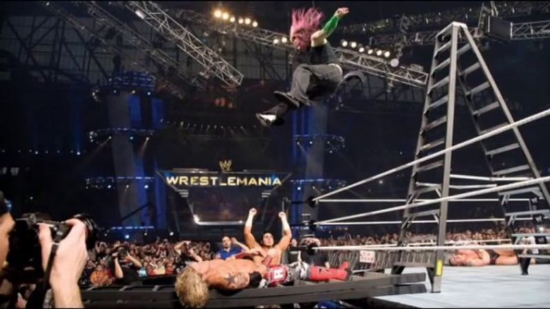 #1 जैफ हार्डी का ऐज को लैडर के ऊपर से लेग ड्राप मारना - रैसलमेनिया 23