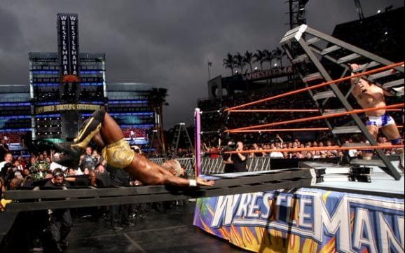 #3 शेल्टन बेंजामिन का लैडर से गिरना - रैसलमेनिया 24