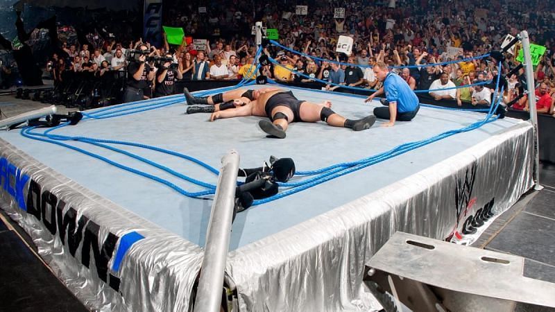 #3 स्मैकडाउन के अंदर हुए बिग शो और ब्रॉक लैसनर के मैच में