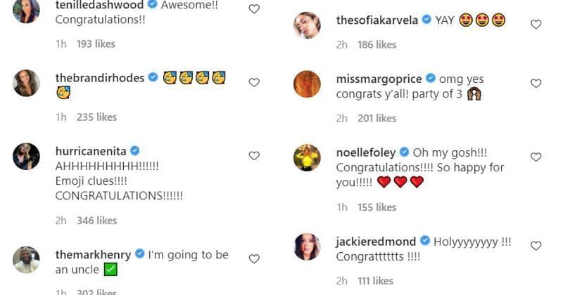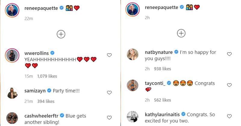 टोनी खान ने भी इस खबर को कंफर्म किया और बधाई दी। रैने यंग ने भी इंस्टाग्राम पर पोस्ट डालकर सभी को बताया। रेसलिंग की दुनिया के कई दिग्गजों ने इस बार पर बधाई दी है। पूर्व WWE चैंपियन को सभी ने बधाई का संदेश दिया। इसमें सबसे पहला नाम सैथ ऱॉलिंस का है। सैथ रॉलिंस ने ही सबसे पहले प्रतिक्रिया दी।